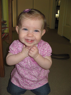 (Yes, she just learned that adorable, fake, kiddie, smile-for-the-camera smile. Be forewarned. It's ADORABLE!)